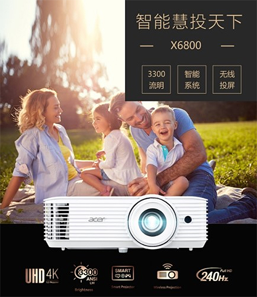 真4K超高清畫面,3300流明高亮度,自帶安卓智能電視系統(tǒng)的智能4K家用投影機X6800,以及3600高流明亮度有Acer
