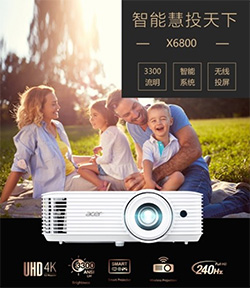真4K超高清畫面,3300流明高亮度,自帶安卓智能電視系統(tǒng)的智能4K家用投影機X6800,以及3600高流明亮度有Acer