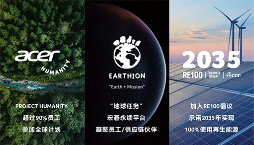 Humanity活動項目自2017年啟動,意在鼓勵員工提出及實踐有益于推動改革及因應氣候變遷的想法;正如影片中所展現,來自宏碁全球世界各地及不同領域的員工,皆展現對于日益嚴重的環境問題及對下一代生活影響的關切;宏碁透過活動及行動鼓勵并投射環保理念,邀請員工攜手為公司實現回收、節約及重復使用的目標而努力。