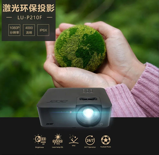 宏碁Vero環(huán)保系列新品LU-P210F激光投影儀不僅在環(huán)保領(lǐng)域做出了創(chuàng)新,更在產(chǎn)品力上幫助商用和家用場(chǎng)景實(shí)現(xiàn)更好的觀感,降低維護(hù)成本。4000流明、影視級(jí)標(biāo)準(zhǔn)色域,30,000小時(shí)長(zhǎng)壽命,7*24小時(shí)不間斷投影,IP6X級(jí)防塵……“環(huán)保、穩(wěn)定、可靠”將成為用戶對(duì)它的首要評(píng)價(jià)。宏碁投影機(jī)將在未來(lái)帶來(lái)更多環(huán)保高效、畫(huà)面精致的投影解決方案。