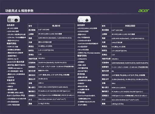 宏碁 HL6810 和 H6815BD 兩款 4K