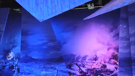 抗美援朝紀念館中,通過13臺明基激光工程投影機打造出極致的畫面。《冰雪長津湖》展項讓游客仿若身臨其境,重現了當時戰場上硝煙滾滾、驚心動魄的場景,展現了先烈們在零下三十多攝氏度的極端天氣中視死如歸、凍成冰雕也不退縮的革命精神。