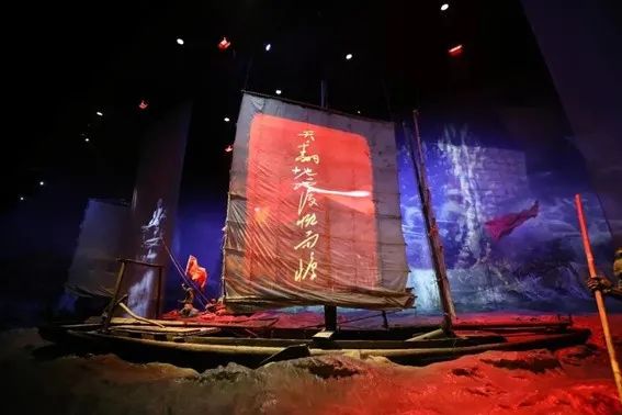 在南京渡江勝利紀(jì)念館“決戰(zhàn)千里·百萬(wàn)雄師過(guò)大江”大型沉浸式場(chǎng)景中,為展示解放軍冒著連天炮火渡江的場(chǎng)景,采用投影機(jī)搭配深色的紗幕來(lái)顯示水面被炮彈炸起的“巨大水柱”,畫(huà)面高達(dá)8m,讓觀眾真實(shí)感受爆炸的“威力”,領(lǐng)略戰(zhàn)斗的激烈。