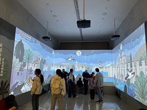 在展陳區特別設置的兒童互動區,三臺明基S7237聯袂打造了一個三面屏的夢幻空間。這里,孩子們可以釋放天性,手繪涂鴉,將自己的想象投影于屏幕之上。在互動與創造中,孩子們不僅增強了參與感,更能感受到古文明的獨特魅力。