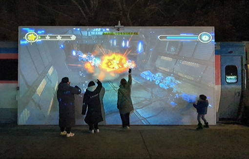 互動游戲區是一個尤為趣味盎然的地方。它采用的兩臺 DWU630-GS 投影機具有超凡的