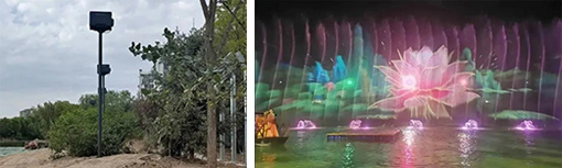 投影機具有優異特性,如高亮度輸出、出色的色彩還原能力、緊湊的外形、以及全方向定位能力,在表演中發揮了關鍵作用。栩栩如生的投影與富有韻律的水柱舞蹈和令人激昂振奮的音樂形成共振,將夜幕降臨后的城市裝扮得五光十色、絢麗多姿。”