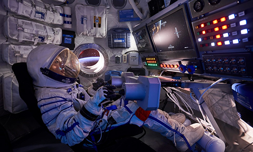 《太空救援》主題體驗(yàn)由科視Christie潘多拉魔盒提供逼真的深空視覺效果(圖片來源:奇幻湃科幻探索館)