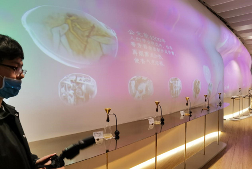 進入館內我們便能與大型曲幕投影上看到香水歷史的沿襲,并能隨著歷史年代的演進輕嗅各類“歷史的香氣”。