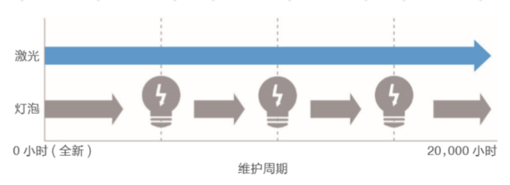 上述時間非承諾保修時間。激光光源亮度將隨使用時間的增加而逐漸降低。激光光源實際使用壽命受使用模式、環境條件、用戶使用習慣