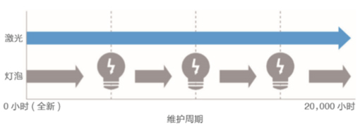 小時的免維護*4,此外,激光光源來自多個激光二極管,免除了在重要演示中投影機光源可能會突然熄滅或變暗的風險。