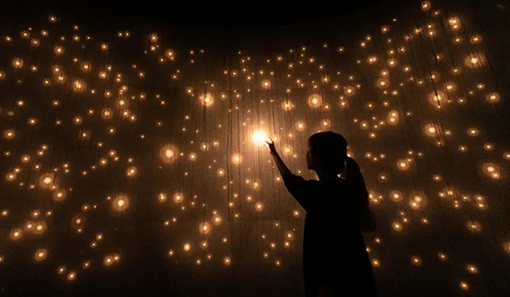 ── 固化光色》,能夠讓身體仿佛飄浮在繁花盛開的宇宙、與藝術融為一體的作品《漂浮于落花世界》。