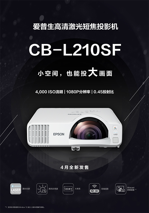 CB-L210SF擁有4,000流明*1*2亮度,畫質更是達到了1080P,高清高亮、全面突破,還可以滿足教育場景和會議辦公所需。
