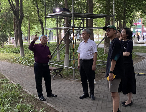 環(huán)境設(shè)計(jì)系主任張林為中國傳媒大學(xué)黨委書記廖祥忠進(jìn)行講解