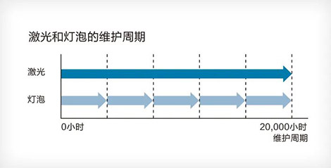 *1 上述時間非承諾保修時間。激光光源亮度將隨使用時間的增加而逐漸降低。激光光源實際使用壽命受使用模式、環境條件、用戶使用習慣等因素影響會有很大差別。投影機在低亮度模式下使用,激光光源使用壽命會得到有效延長。