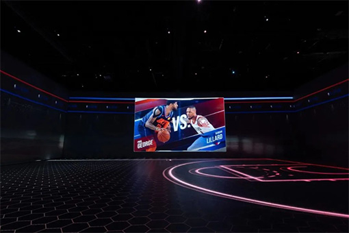 愛普生作為投影設備供應商,提供了近百臺使用4KE*1顯示效果的7000流明*2*3*4激光工程投影機CB-PU1007B,通過墻面地面投影、紗幕投影,打造360度沉浸環繞的多媒體視效,用視覺藝術“譜寫”NBA籃球傳奇。