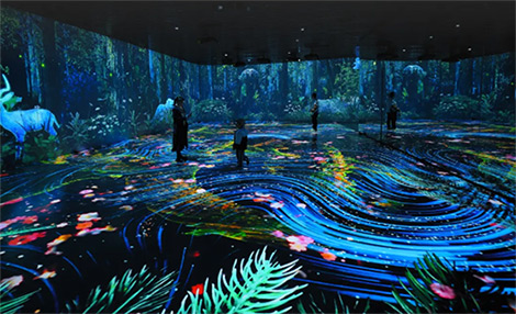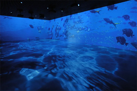 52臺13000流明*1*2的愛普生激光工程投影機,通過墻面投影、地面投影和地面互動裝置,打造黃渤海新區產業文化中心展館的沉浸式體驗,將展館設計從單純的視覺欣賞活動推向聲、畫、感官的全息沉浸式互動體驗,讓想象空間觸手可及!