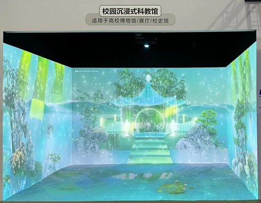 其中,沉浸式影像方案以CAVE空間、“L形藝術(shù)墻”、“球幕”等形式覆蓋了高校博物館、校史館、展廳、校園宣傳角等場景,色彩艷麗的投影畫面為良好的內(nèi)容傳播效率做好鋪墊。