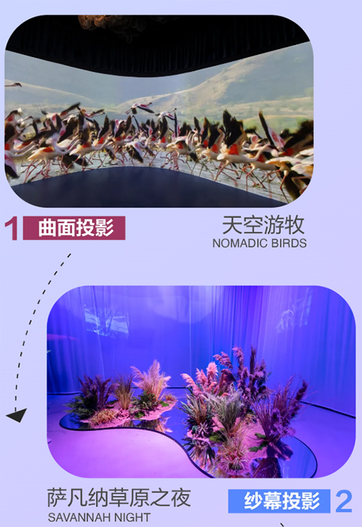 愛(ài)普生CB-PU1007B、5臺(tái)6000流明*2*3愛(ài)普生CB-L635SU,配合不同主題的香氛,強(qiáng)化沉浸感,打造全景沉浸的視覺(jué)體驗(yàn)。