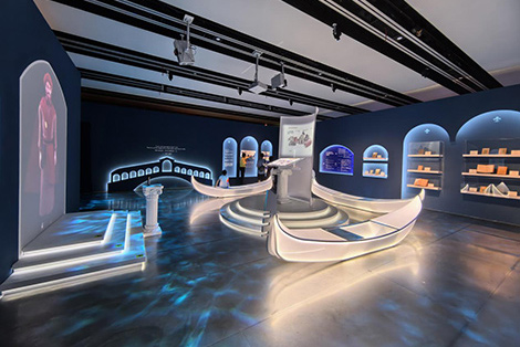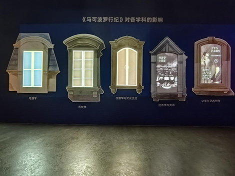 在這個描述馬可·波羅漫長行跡的展廳內,展覽采用了“星球+星光”的浩瀚宇宙光景來表現馬可·波羅一生的傳奇之旅。