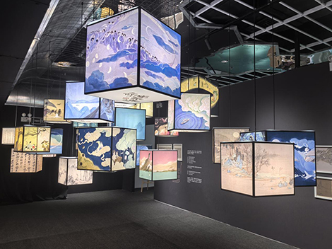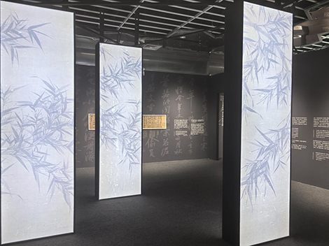 空間內所應用的愛普生CB—L530U高清激光投影機憑借WUXGA高分辨率,讓水墨在投影幕布上暈染出的每一絲紋路都清晰可見。宣紙的粗糙肌理與墨色濃淡變化,在細膩的像素點支撐下鮮活生動,盡顯國畫的悠遠意境。其20000:1的高對比度,將詩文典籍中字跡的棱角與筆鋒的力道刻畫得入木三分,墨色深淺與紙張斑駁痕跡在光影流轉間交織,訴說著歷史的滄桑。面對古風畫作,CB—L530U將赭石與花青的交融渲染得如絲綢般順滑。柔和的色調里藏著歲月沉淀的韻味。而當呈現現代畫作時,濃烈的色彩碰撞被精準還原。在細膩的色彩校準下,創作者的情感滿溢而出,觀者仿佛置身于色彩構建的藝術場域,感受著情緒在畫面中徐徐鋪展、層層遞進。
