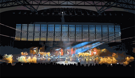 光影科技賦能非遺,讓千年英歌“活”在當下。《英歌情》舞臺造景多樣,投影應用涉及紗幕投影,舞臺裝置投影,背景投影等三個不同位置縱深的舞美場景。愛普生精準(像素級)鏡頭記憶功能,單個投影系統可多場景使用, 其中6臺CB-PU2116W通過設置3組鏡頭記憶功能完美實現,充分體現了愛普生工程投影機,高精度,高性價比,高靈活性特點。