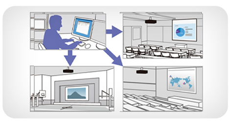 簡單易用的Epson Projector Management,可監控多臺聯網投影機(最多2,000臺)。投影機的電源狀態、故障、警報等都可以被直觀地察覺,還可通過電子郵件獲知投影機的異常。