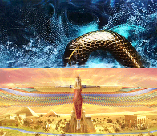 愛普生工程投影機以超寬幅環幕為載體,實現了一場多媒體數字內容與古埃及文物的跨時空聯動。觀眾可通過觸摸畫面,擾動混沌之水、召喚古埃及眾神。