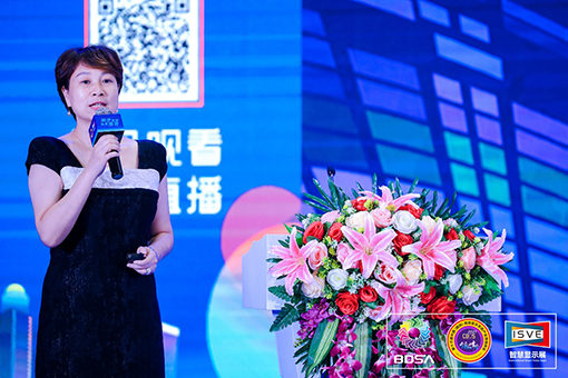 隨后,在商用顯示系統(tǒng)產(chǎn)業(yè)領(lǐng)袖峰會(huì)上,鴻合科技總裁孫曉薔帶來(lái)主題為“商顯世界,千帆竟立潮頭”的重磅演講。孫總談到:“在萬(wàn)物互聯(lián)的時(shí)代,交互顯示終端作為“入口”將釋放更大價(jià)值。當(dāng)下,SmartOffice