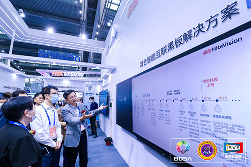 作為中國(guó)教育信息化的推動(dòng)者和領(lǐng)導(dǎo)者,鴻合科技提出“一核兩翼”的發(fā)展戰(zhàn)略,以產(chǎn)品及方案為核心,持續(xù)研發(fā)創(chuàng)新,助力我國(guó)教育高質(zhì)量發(fā)展。現(xiàn)場(chǎng),鴻合智能互聯(lián)黑板解決方案引人矚目,將傳統(tǒng)與科技相結(jié)合,采用“黑板+屏+黑板”的一體化交互設(shè)計(jì),教師在兩側(cè)黑板的板書(shū)內(nèi)容可直接同步到中間屏幕,同步展示、及時(shí)保存、掃碼分享。不僅擴(kuò)大板書(shū)顯示面積,也避免了學(xué)生因埋頭記板書(shū)而降低課堂效率的情況發(fā)生,全面提升課堂教學(xué)效率,還原老師傳統(tǒng)板書(shū)習(xí)慣,讓學(xué)生和老師暢享智慧課堂。鴻合大尺寸智能交互教學(xué)解決方案,超大尺寸的顯示面積適用于多種場(chǎng)景,還內(nèi)嵌豐富教學(xué)資源。鴻合信息發(fā)布系統(tǒng)解決方案,為創(chuàng)建數(shù)字校園帶來(lái)豐富理念和全新手法,深受教育用戶歡迎。此外,展會(huì)現(xiàn)場(chǎng)還展示了鴻合智能會(huì)議門(mén)牌、電子班牌等設(shè)備。
