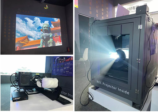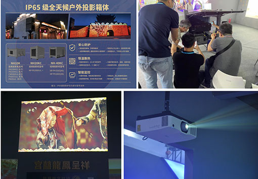戶外亮化、夜游經濟的興起,賦予了投影機多元化的應用方式。然而,戶外投影環境嚴苛,要保證投影秀項目長期、穩定運行,既需要高品質投影機,也需要質量上乘、穩定性強的戶外箱體。現場展出的由NEC雙色激光工程投影機英雄系列PX2000UL+搭載IP65級全天候戶外投影箱體NH20KC傾情打造的“光影紫禁”戶外投影解決方案就給客戶吃下了“定心丸”。值得一提的是,該展項中在紫禁城上空展翅飛翔的五彩鳳凰是由NEC