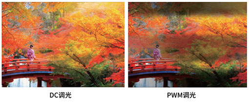 說到顯示屏幕的背光亮度調節方式,市場主流的是PWM和DC這兩種。一般的液晶顯示器多采用PWM方式對背光亮度進行調節(PWM背光亮度調節:通過控制背光LED的亮-滅-亮-滅交替的比例方式(一明一暗比例)進行背光亮度調光)。在屏幕亮、滅的過程中,滅屏狀態持續時間越長,屏幕給肉眼的觀感是亮度越低。點亮的時間越長,滅屏時間就相應減少,屏幕就會變亮。這種調節頻率肉眼難以察覺,但是視覺細胞會對屏幕明暗變化做出敏感反應,頻繁地調節亮度,會使視覺細胞頻繁地驅動眼部肌肉,刺激神經,從而造成視覺疲勞。