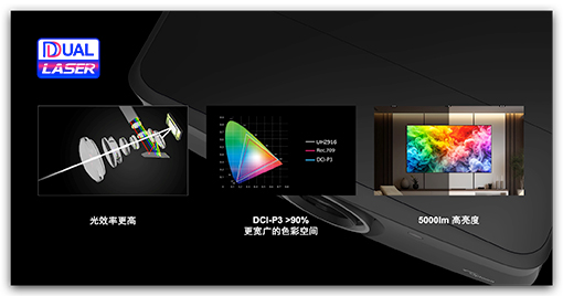 采用雙激光技術(shù), 能夠顯示更亮、更準(zhǔn)確的顏色和更高的飽和度