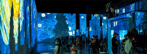 Immersive額外使用53臺(tái)投影機(jī)設(shè)計(jì)了第二種無需下車的“得來速”式觀展方式。與傳統(tǒng)的步入式體驗(yàn)展一起對(duì)公眾開放。兩種形式的展覽都讓參觀者置身于梵高經(jīng)典的藝術(shù)作品中。首展門票迅速售罄,網(wǎng)上也熱議不斷。而來自團(tuán)隊(duì)的反饋表示,自藝術(shù)展開展以來,松下投影機(jī)所需的維護(hù)和保養(yǎng)成本都非常低。