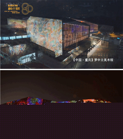 在四川美術(shù)學(xué)院80周年校慶上,幻鯊文化SKG+應(yīng)邀在川美的標(biāo)志性建筑:羅中立美術(shù)館上創(chuàng)作了這部藝術(shù)作品“沐光森林”。