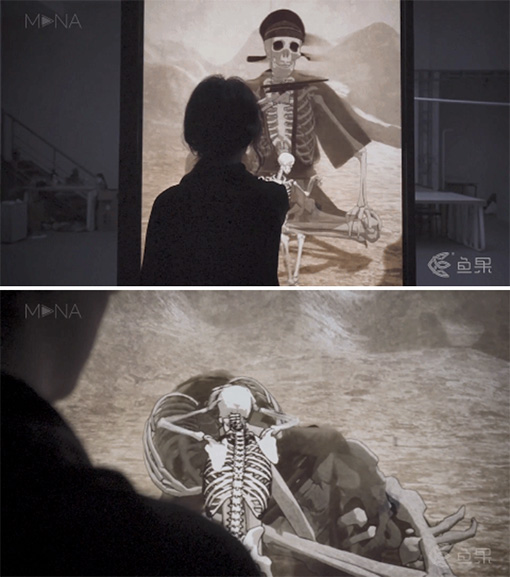 新媒體藝術(shù)裝置《骷髏幻戲圖》,以宋代名作《骷髏幻戲圖》為原型。以交互體驗的形式傳遞宋畫原著中蘊含的生死觀,讓古畫中的現(xiàn)代價值得以新的延續(xù)。