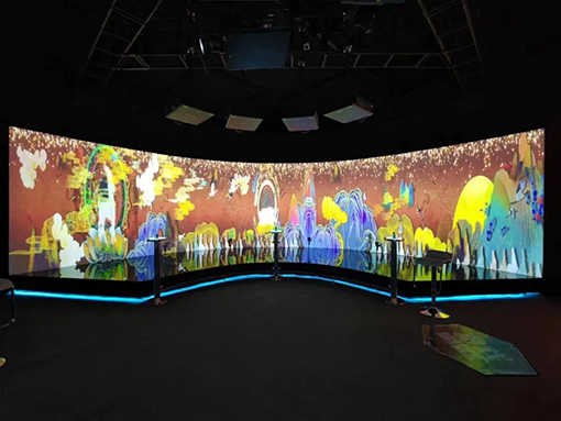 展項中共使用4臺10,500流明(中心亮度)的PT-FRQ100C,在12米長的巨幅弧幕上交織出華美長卷。典雅瑰麗的東方美學,在松下PT-FRQ100C的投射出的絢麗色彩中徜徉而過。