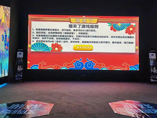 在公共空間中,一個能實現體感互動、有競技性的游戲,無疑是人群聚集之處!坝跋耋w感互動應用”展項使用一臺21,000流明(中心亮度)的松下PT-SRQ25KC,搭配動作捕捉攝像頭,精準識別人的動作,并實時給予反饋,實現具有強烈代入感的互動體驗。