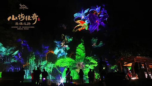 英雄之路》沉浸式夜游,是與央視IP《山海經奇》紀錄片聯合打造的項目,這場夢幻的光影奇旅,借助新技術、新媒介把遙遠的上古神話鋪展到人們眼前,一步一山海,一夜一千年,用美輪美奐的光影喚起人們的想象力。