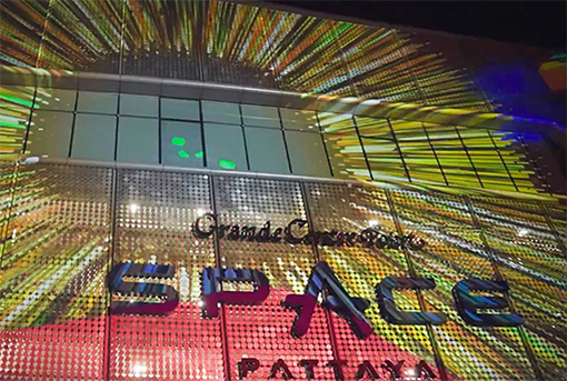使用高亮度投影機(jī),在酒店的動(dòng)態(tài)外墻上投射出生動(dòng)的影像,將主題酒店華麗變身為城市矚目的視覺(jué)地標(biāo)。