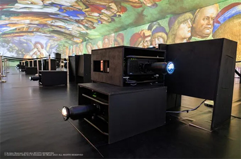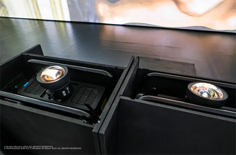 使用了39臺全新的松下投影機,包括具有SDM擴展槽功能的35臺PT-FEZ100C(中國型號)和4臺PT-FEZ120C(中國型號),以完成近2,000平方米的投影。此方案的優勢在于無需額外的布線,不會產生額外的能耗。 |