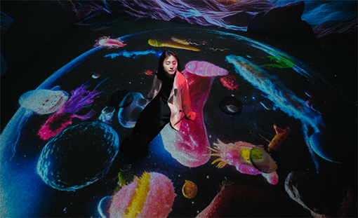 Hues》和《生命的起源》中,松下PT-BAZ712C系列工程投影機釋放著3LCD光源的優(yōu)勢,在墻面訴諸霓虹燈般的迷幻色彩。創(chuàng)作者們肆意揮灑想象,松下工程投影機讓畫面搖曳生姿,討好著人們的眼球。
