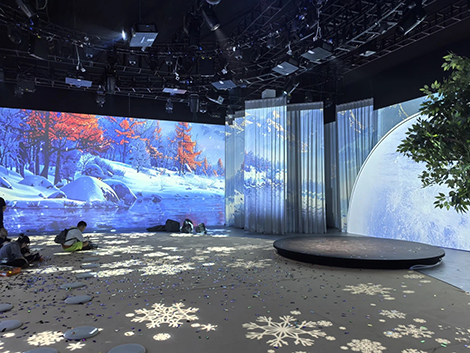 《四時雅光》場景中,共使用8臺松下PT-SMZ21KCL液晶工程投影機,負責四周墻面、舞臺背景的月亮造景和紗幕的投影。松下系統工程投影機出色的色彩還原是表現數字內容的關鍵,優秀的融合性能與多臺投影機同步功能也在打造大畫面沉浸式無縫影像時有著重要作用。另外,松下系統工程投影機還支持多種命令協議,在舞臺演出等場景編排中,可與其它舞臺燈光設備等進行聯動控制。 |