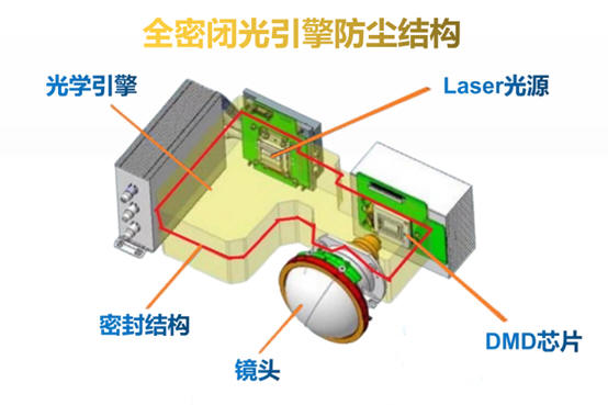 無論在會議室、教室或展示空間,粉塵都是影響投影機壽命和效果的主要原因。夏普“伯爵”系列從根本上杜絕了粉塵困擾。其采用了全密閉光學引擎防塵結(jié)構(gòu),讓激光光源、DMD芯片、鏡頭等核心元器件都處于完全密封的結(jié)構(gòu)中,粉塵完全不會進入其中干擾元器件。不僅可以確保元器件不會因粉塵而故障,還能讓亮度衰減與性能下降更緩慢。