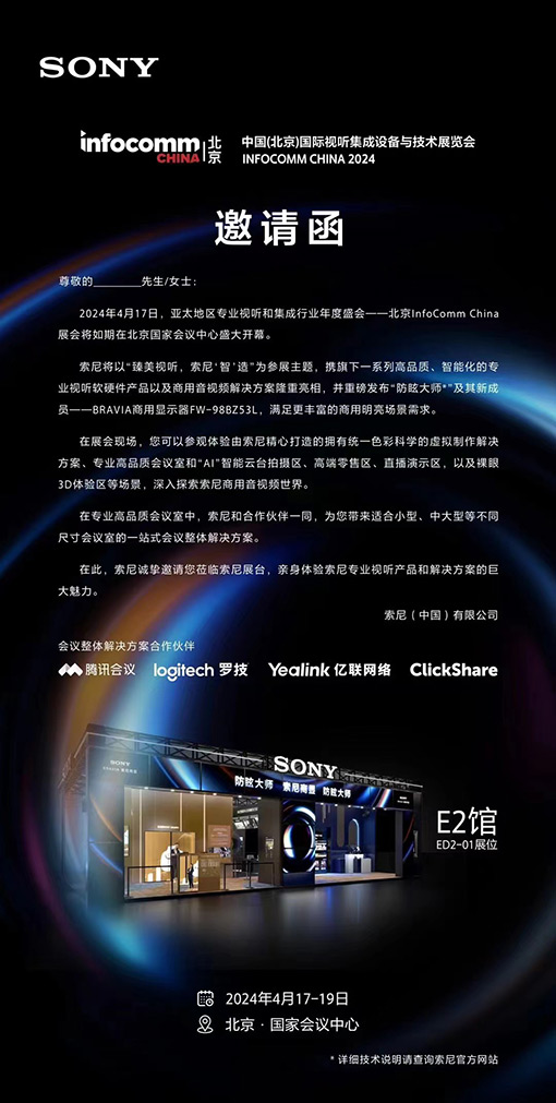 在展會現(xiàn)場,您可以參觀體驗由索尼精心打造的擁有統(tǒng)一色彩科學的虛擬制作解決方案、專業(yè)高品質會議室和“AI"智能云臺拍攝區(qū)、高端零售區(qū)、直播演示區(qū),以及裸眼3D體驗區(qū)等場景,深入探索索尼商用音視頻世界。