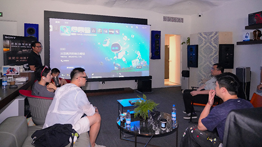 除了專業(yè)影音室的演示外,現(xiàn)場(chǎng)還特別設(shè)置了“類客廳”體驗(yàn)區(qū),觀眾可以在此體驗(yàn)索尼家用投影P7與PS5搭配的游戲效果,配合索尼回音壁產(chǎn)品,構(gòu)建出具有沉浸感的客廳娛樂(lè)系統(tǒng)。不少觀眾親自上手試玩,在大屏上感受震撼的畫(huà)面,現(xiàn)場(chǎng)氣氛熱烈。