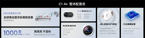 Air在體積縮小40%,重量減輕28%的情況下,色彩表現卻保持了三色激光一貫的超高水平,1000ANSI/CVIA流明的實測亮度在同價位也屬翹楚。除了外觀更加小巧時尚,Vidda還很貼心地給C1