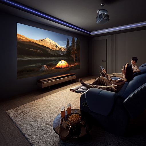 38激光器和0.9~1.5:1超廣投射比超級光學變焦鏡頭,可以實現2米距離投出100英寸畫面、3米距離投出150英寸畫面,讓影音發燒友們輕松實現擁有真正影院級巨幕的夢想。
