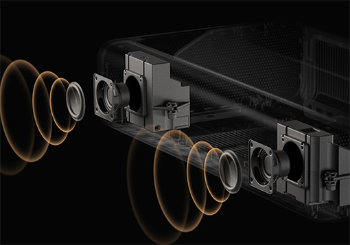 不僅畫質(zhì),極米MIRA在音質(zhì)上更是全面碾壓百吋電視。極米與harman/kardon聯(lián)合為MIRA設(shè)計(jì)了2.1聲道音響,帶來令人驚艷的聽覺享受。前置的左右揚(yáng)聲器,能正對觀眾席左右兩側(cè)發(fā)聲,有效形成聲音的方位感。絕無僅有的超大低音炮,讓低音下潛更飽滿、雄厚。更符合聲學(xué)規(guī)律的音響結(jié)構(gòu)設(shè)計(jì),提供遠(yuǎn)超電視的3D環(huán)繞感。