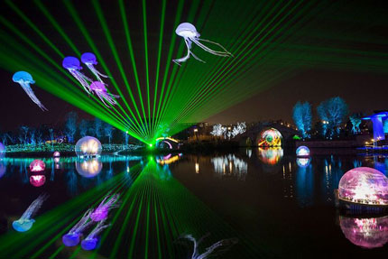高逼格的燈光節(jié),語言難以描述,只有親臨現(xiàn)場(chǎng),才能體驗(yàn)到那種極致的炫美與震撼。21個(gè)大景點(diǎn),十幾個(gè)燈光小品,組成了鏡湖光影藝術(shù)節(jié)的逆天陣容。