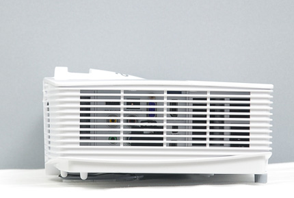 機器一側外殼部分采柵欄型設計,但隱約可見內部藏有傳輸接口群,這在投影機里算是較少見的設計。